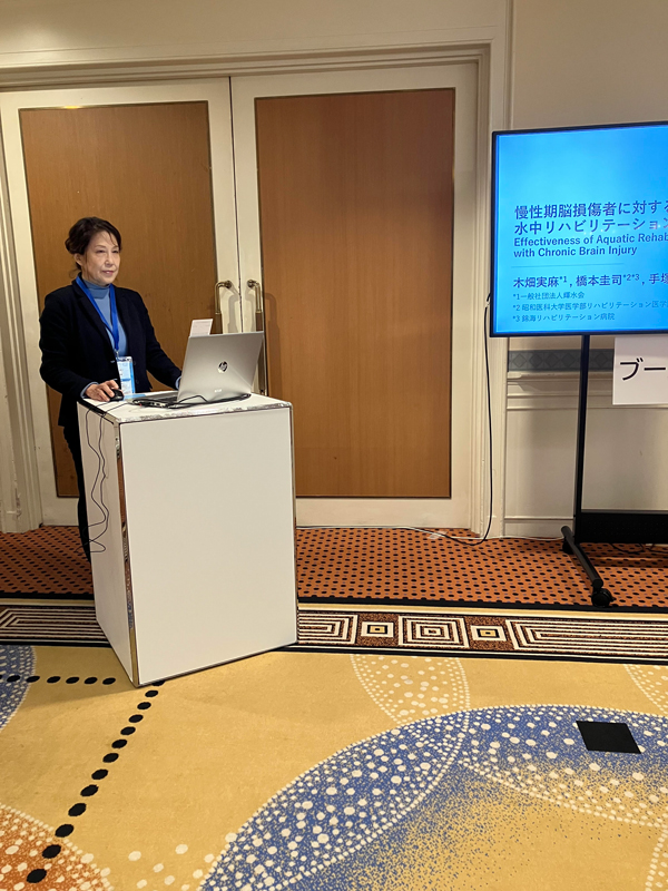 橋本圭司医師(昭和医科大学医学部リハビリテーション医学講座・錦海リハビリテーション病院)の協力のもと実施する「交通事故等による障害のある人、高次脳機能障害に対する水中環境での運動を用いた取り組み」(一般社団法人日本損害保険協会 2025 – 2027年度自賠責運用益拠出事業)において検証を行なっている、水中活動の効果についてポスター発表を行いました。