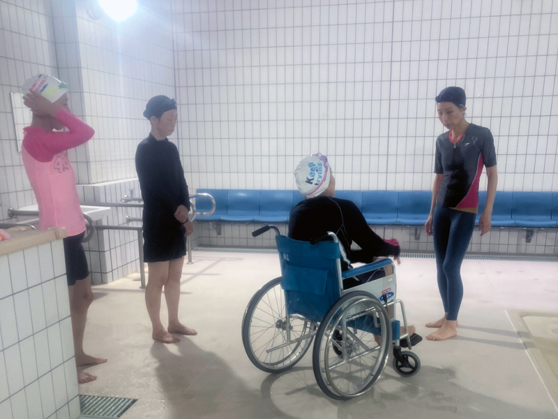 輝水会では水中活動の取り組みに一緒にプールに入り水中リラクゼーションやエクササイズの介助をするサポーターを募集しています