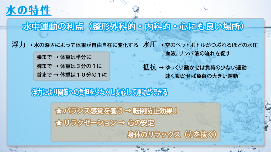 年齢や障害を問わず、誰でも楽しめる水の良さ、ぜひ体験してみませんか?